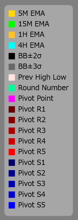 لا تظهر الخطوط المحورية (S1-S5 / R1-R5) والرقم المحوري على الرسم البياني إلا عند الوصول إلى السعر.